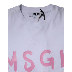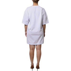 MSGM White Logo Print Cotton T-shirt Short Sleeves Mini Dress