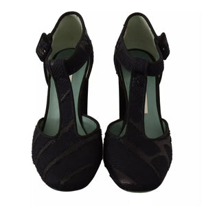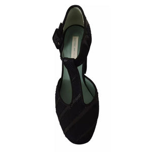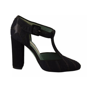 Paola D'Arcano Black Suede Leather Block Heels Sandals Shoes