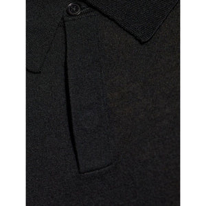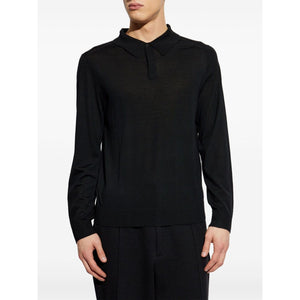 black short front button fastening long sleeves ribbed cuffs and hem Wool polo shirt