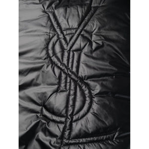 Cassandre Anorak oversized hooded coat from SAINT LAURENT featuring jet black, padded design, glossy finish, embroidered logo to the rear, slouchy drawstring hood, half front zip fastening, two side welt pockets, drop shoulder, long sleeves, elasticated cuffs and drawstring hem. Nylon blouson Size and Fit - This piece fits true to size. We recommend you get your regular size. Model is 1,84m / 6ft 1in wearing size 48 (IT)