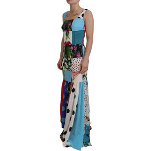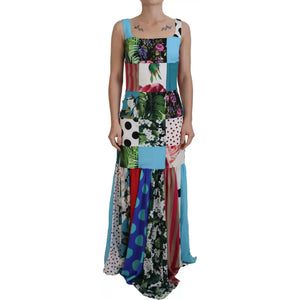 Dolce & Gabbana Silk Multicolor Patchwork Sheath Maxi Dress
