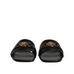 Gorgeous brand new with tags, 100% Authentic VERSACE black leather logo plaque open toe slip-on style.
